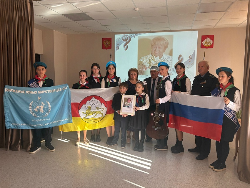 Вероника Чиаева ученица МБОУ СОШ №40, член Совета ДЮМ РСО-Алания исполнила Миротворческую песню «Надежда» - гимн миротворцев.