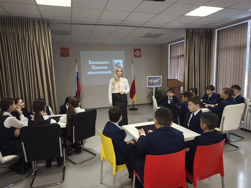 «Холокост. Память поколений». В нашей гимназии прошло важное и пронзительное мероприятие, посвящённое памяти жертв Холокоста. Учащиеся собрались вместе, чтобы вспомнить трагедию, которая унесла миллионы жизней, и напомнить миру: «Никогда больше». В ходе встречи ребята узнали о страшных страницах истории, о мужестве тех, кто спасал людей, и о ценности человеческого достоинства даже в самые тёмные времена. Через документальные кадры, воспоминания очевидцев, стихи и минуту молчания мы почтили память невинно погибших.