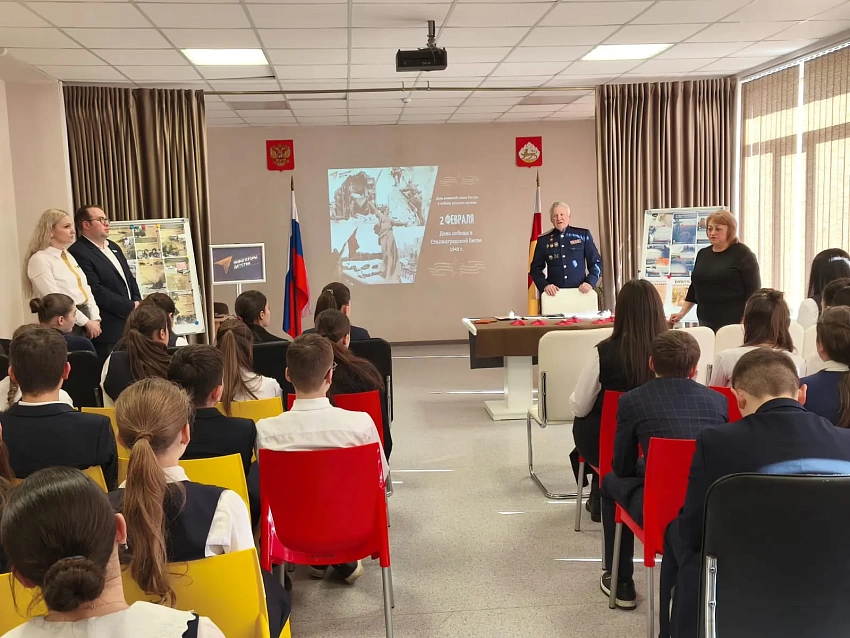 В 16-й гимназии состоялось мероприятие, посвященное одной из самых героических страниц нашей истории – Сталинградской битве. В этот день собрались не только ученики гимназии, но и ребята из школ №41, №42, а также Центра образования «Интеллект», чтобы вместе почтить память защитников Отечества. Гостем мероприятия стал казачий полковник Виктор Анатольевич Климов, заместитель атамана Союза Казаков-Воинов России и Зарубежья по военно-патриотической работе. Началось мероприятие с просмотра документального фильма, который рассказал о ходе Сталинградской битвы, о мужестве и стойкости советских солдат. После фильма Виктор Анатольевич продолжил рассказ, делясь с ребятами своими знаниями и размышлениями об этом переломном моменте Великой Отечественной войны. В завершение мероприятия со словами искренней благодарности выступила директор 16-й гимназии Елена Борисовна Рамонова. Она поблагодарила всех присутствующих за внимание к истории и выразила надежду, что подобные встречи будут способствовать сохранению памяти о великих подвигах нашего народа.