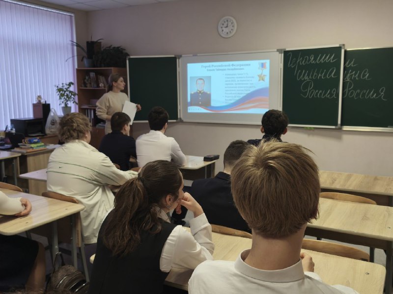 Сегодня, 02.02.2026, в гимназии был проведён единый классный час "Героями сильна Россия". В рамках мероприятия учащиеся познакомились с подвигами и примерами силы духа героев нашей страны, обсудили значение патриотизма и гражданской ответственности. Классный час способствовал формированию у школьников чувства гордости за Родину и осознанию важности исторической памяти.